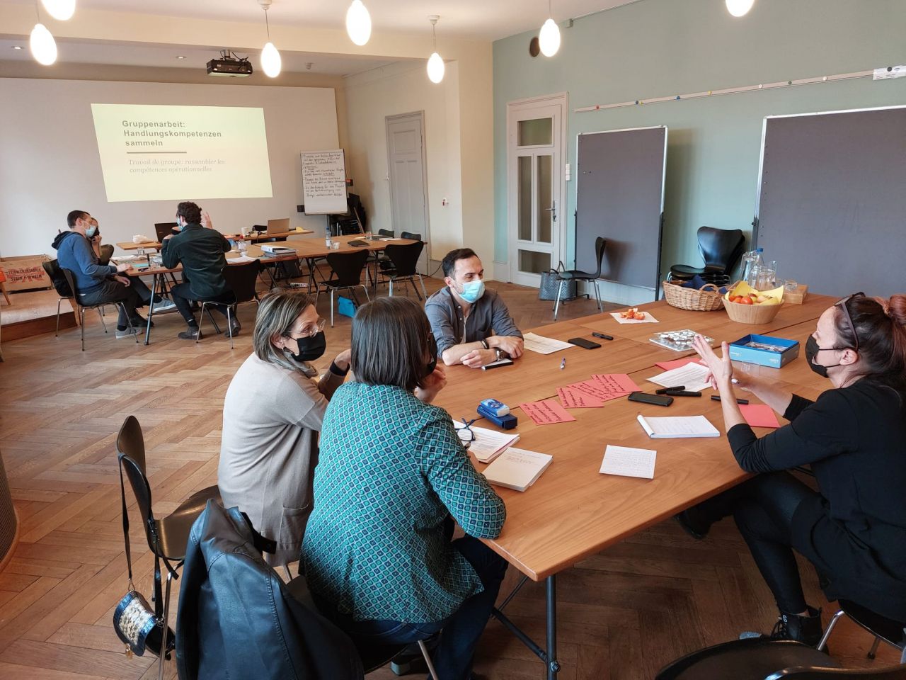 Das neue Qualifikationsprofil: Seit Anfang 2022 fanden vier Workshops zur Überarbeitung des P3D-Ausbildungsplans statt. In der Arbeitsgruppe arbeiten 10 Personen, Coach Isabelle Lüthi vom bwerk macht die pädagogische Begleitung.