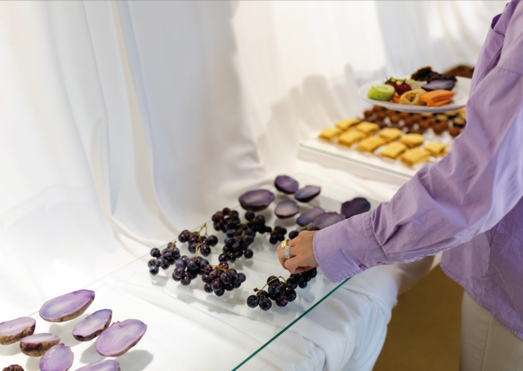 Aufbau des von den Studierenden des 1. Semesters entworfenen kulinarisch-szenografischen Apéros für die Szenografie-Fachtagung HELGA