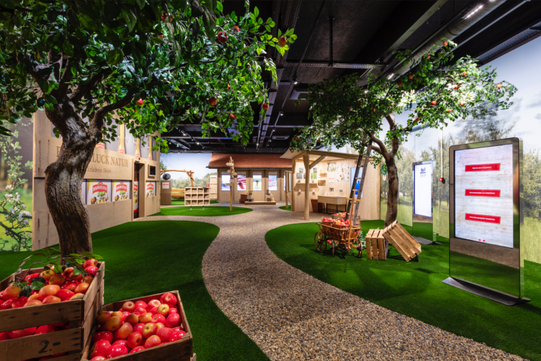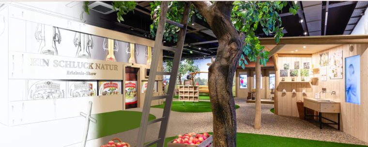 Die RAMSEIER Obstsäfte sind den meisten Schweizerinnen und Schweizern ein Begriff. Viele haben den leckeren Süssmost, den sauren Most oder die Apfelschorle schon getrunken. Wie aufwändig der Prozess des Mostens - also der Obstsaftproduktion - aber tatsächlich ist, wissen die wenigsten. Genau das will die neue Erlebniswelt ändern: Die Besucherinnen und Besucher tauchen in eine Welt voller Düfte und Geräusche der Natur ein, erfahren welche «Superfrucht» der Apfel ist, lernen die Geschichte und die Produktion des Gastgebers kennen und können die Ergebnisse im Hofladen degustieren. Für die Planung und Umsetzung des Besucherzentrums zuständig war die Luzerner Full-Service-Agentur PENGland. Sie haben Wissenswertes und Unterhaltsames miteinander verbunden und das in einer visuell enorm ansprechenden Kulisse.