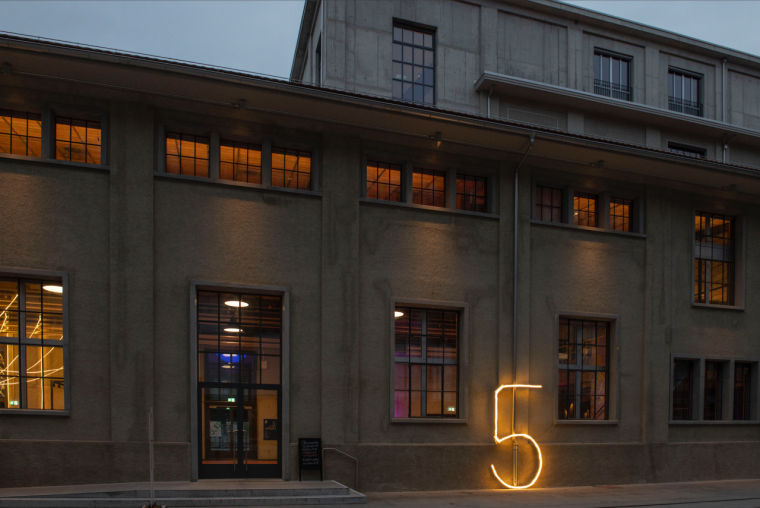 Als Inspiration für die Weihnachtsdeko der Schule diente nämlich die Baustellenbeleuchtung aus LED-Lichterschläuchen auf der Baustelle des Campus’ Bernapark. Die Idee, das Konzept und die Montage übernahm das Ausstellungsteam der Schule für Gestaltung, umgesetzt wurde die Weihnachtsinstallation im Restaurant BB in der Halle 4 im Campus Bernapark.